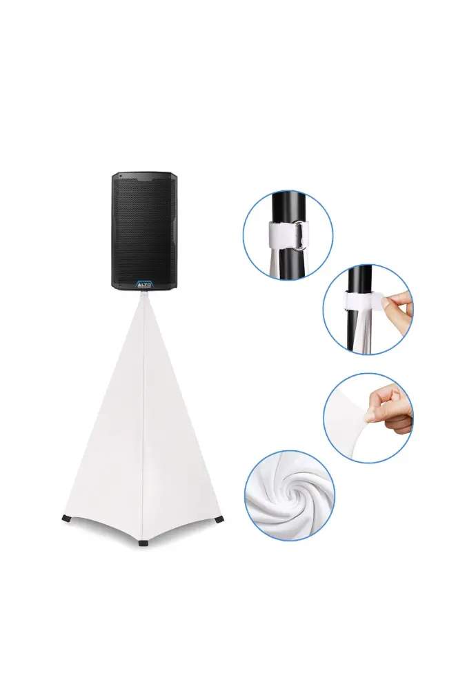 Un Lycra blanc parfait pour dissimuler la base de vos pieds d'enceintes et mettre en valeur votre installation sonore, DJ et d'éclairages. S'adapte à tous les pieds d'enceintes disponibles.