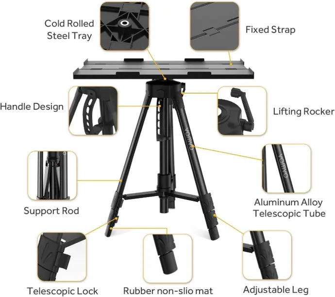 - HAUTEUR ET LARGEUR RÉGLABLES: Le trépied est équipé d'une tige télescopique et de trois pieds réglables. Vous pouvez facilement régler le support à la hauteur souhaitée.